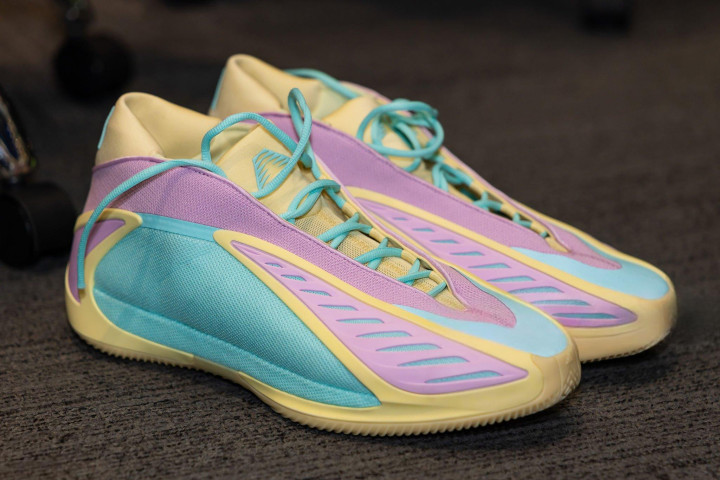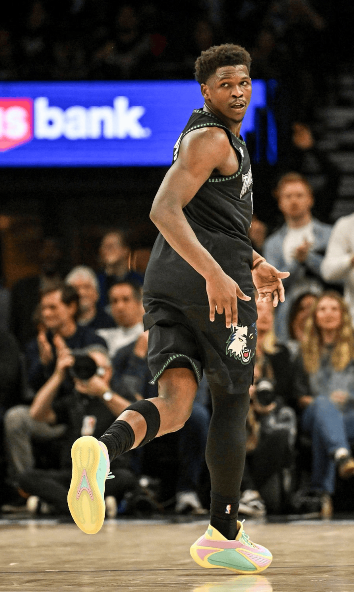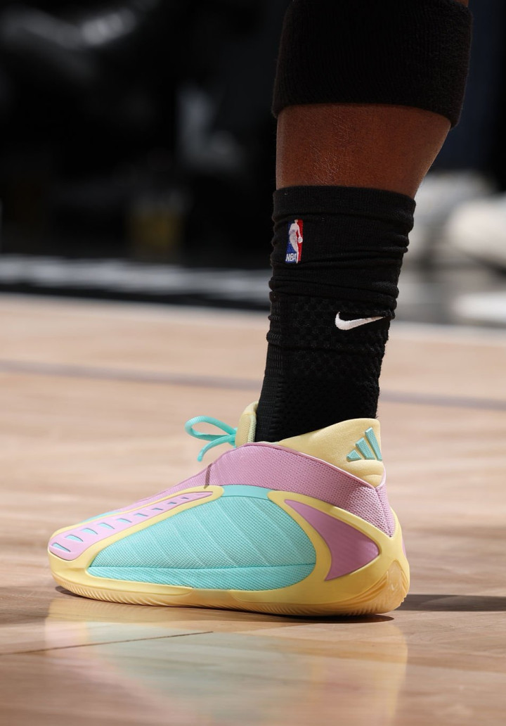 比赛中,爱德华兹上脚回生节配色adidasAE2。