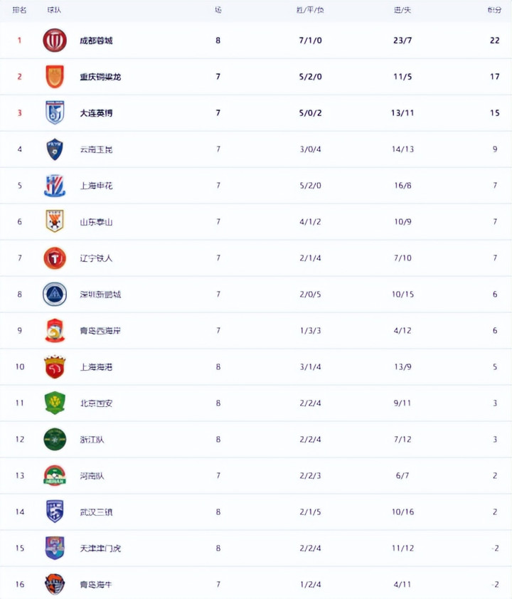 在积分榜上,成齐蓉城以22分高居榜首真钱牛牛app,战绩是7胜1平,保握不败。重庆铜梁龙17分,名次序2,比成齐蓉城少赛一场。大连英博以15分名次序3。第4的是云南玉昆,拿到9分。上海申花、山东泰山和辽宁铁东谈主齐是7分。上海海港赢球之后,总积分达到5分,升到第10名。而输球的北京国安独一3分,名次序11。浙江队亦然3分,名次序12。