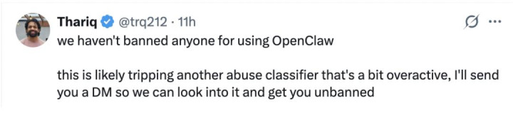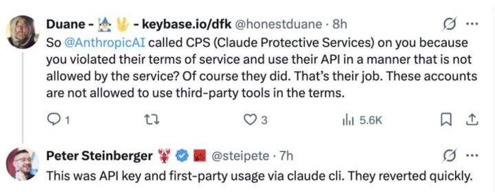 也不知谈到底是不是 Thariq Shihipar 的维护,也曾自身这次的「封禁」就只是个乌龙,总之,在「封禁」两个小时之后,Peter Steinberger 的账号就取得了还原。