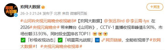 3月3日晚,2026央视元宵晚会肃肃遣散。