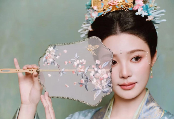 宋制汉服加非遗花丝嵌入头饰,宛如古画中东说念主。