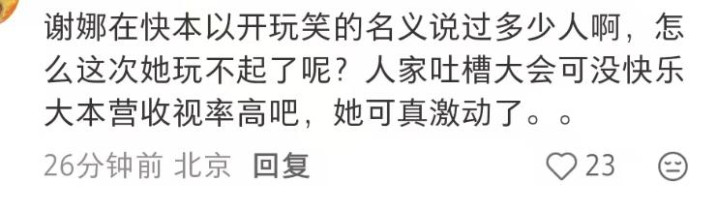 可除了嘲讽薛之谦的声息,也有不少网友质疑起了谢娜本东谈主太双标,只因她打着幽默旗子内涵吐槽过的东谈主也不少。
